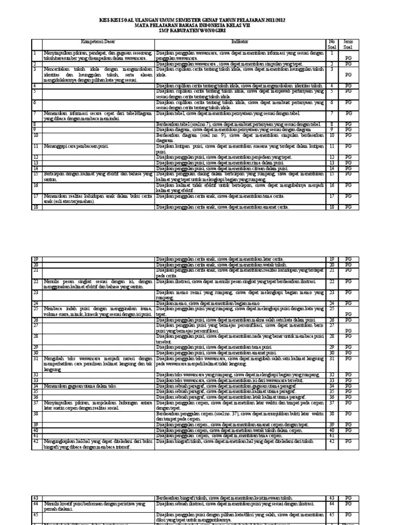 Soal uas / pas bahasa indonesia smp kelas 7 semester ganjil tahun.